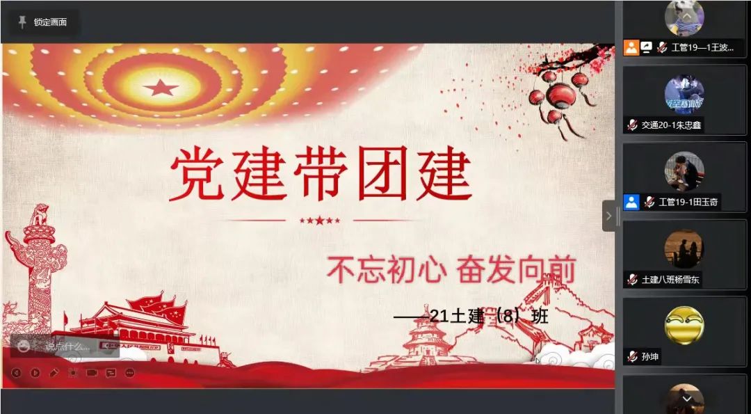 2022年4月,伟德官方网站员工第二党支部在管科、土建团支部组织开展了以“不忘初心,奋发向前”为主题的“党建带团建”活动。其中,4月21日15:00,党员杨佳慧、郭鑫同志于腾讯会议为21级管理二班团支部开展此项活动;4月22日16:30,党员田玉奇、王波同志于腾讯会议为21级土建八班团支部开展此项活动。