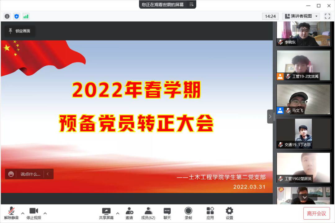 2022年3月31日14:30,伟德官方网站员工第二党支部通过腾讯会议组织开展了预备党员转正大会,参加本次会议的有支部书记杨明明老师、全体党员及部分积极分子,本次会议由党员荣颖蕤同志主持。