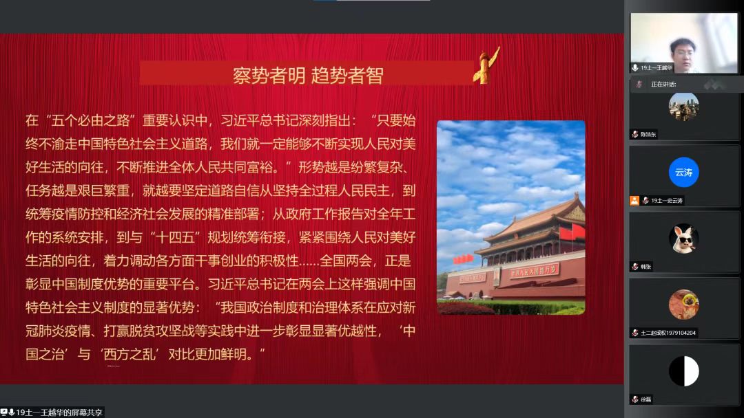 2022年5月6日下午13:30,伟德官方网站员工第一党支部于线上腾讯会议开展了以“聚焦两会”为主题的党课学习,本次主讲人为王越华同志,全体党员参与学习。