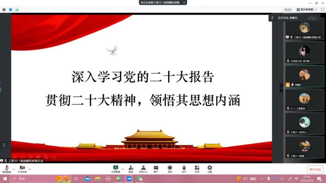 2022年2月16日15:00,伟德官方网站员工第四党支部于腾讯会议开展了以“深入学习党的二十大报告”为主题的学习。参加本次学习的有四支部全体党员和积极分子。