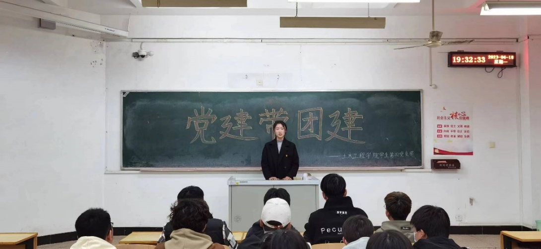 2023年4月,伟德官方网站员工第四党支部在工管团支部组织开展了“党建带团建”的主题活动。其中,4月10日19:30,党员张淼琪、孙英敏同志于二教B110为21级工程管理二班团支部开展此项活动;4月12日19:30,党员刘昱莹、陈敏同志于二教B108为21级工程管理一班团支部开展此项活动。