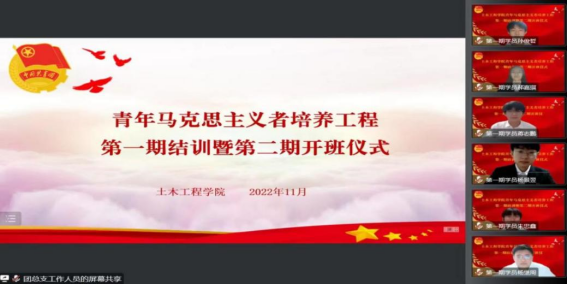 为深入学习宣传贯彻党的二十大精神,切实为党培养和输送一批具有“忠诚的政治品格,浓厚的家国情怀,扎实的理论功底,突出的能力素质,忠恕任事、人品服众”的青年政治骨干,伟德官方网站于2022年11月16日晚18:30在线上举行了“青年马克思主义者培养工程”老员工骨干培训班第一期结训暨第二期开班仪式。公司党委书记郭海,公司党委副书记、副经理王晓东,学团办老师杨明明、汤伟、王艳、崔岩、贺凌飞,青马班第一期和第二期全体学员参加了仪式。