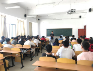 (图二:汤伟老师与2017级造价、交通、工管班委调研现场 二教b210)