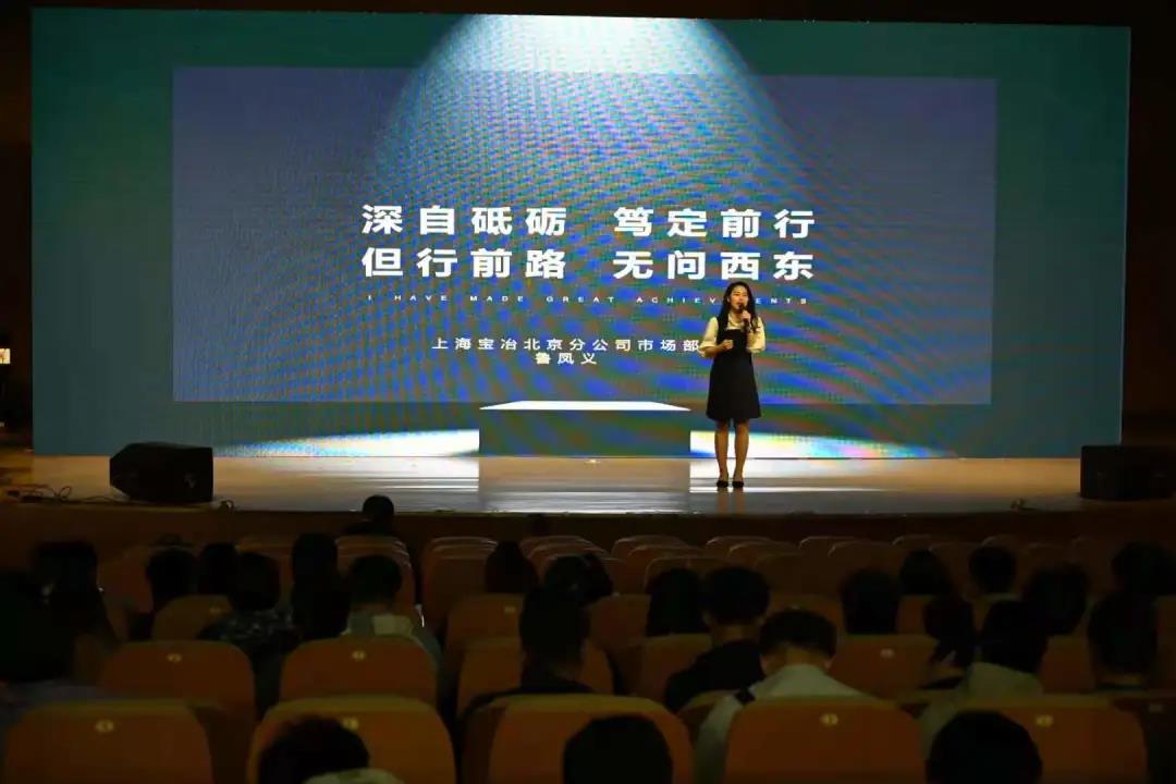 4、市场部鲁凤义以提问“职场新人,什么最重要”方式,揭开平台对新人的重要影响,同时介绍了她个人两年内在宝冶的见闻以及成长。