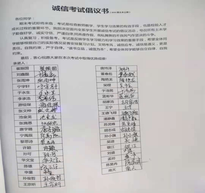 本学期学习生活已接近尾声,期末考试临近,为进一步激发同学们备考的积极性,树立良好的学风、考风,营造文明、诚信考试的良好氛围,提高同学们的道德修养和思想素质,伟德官方网站于2021年6月20日至6月30日开展了“严肃考风考纪,建设优良学风”活动。
