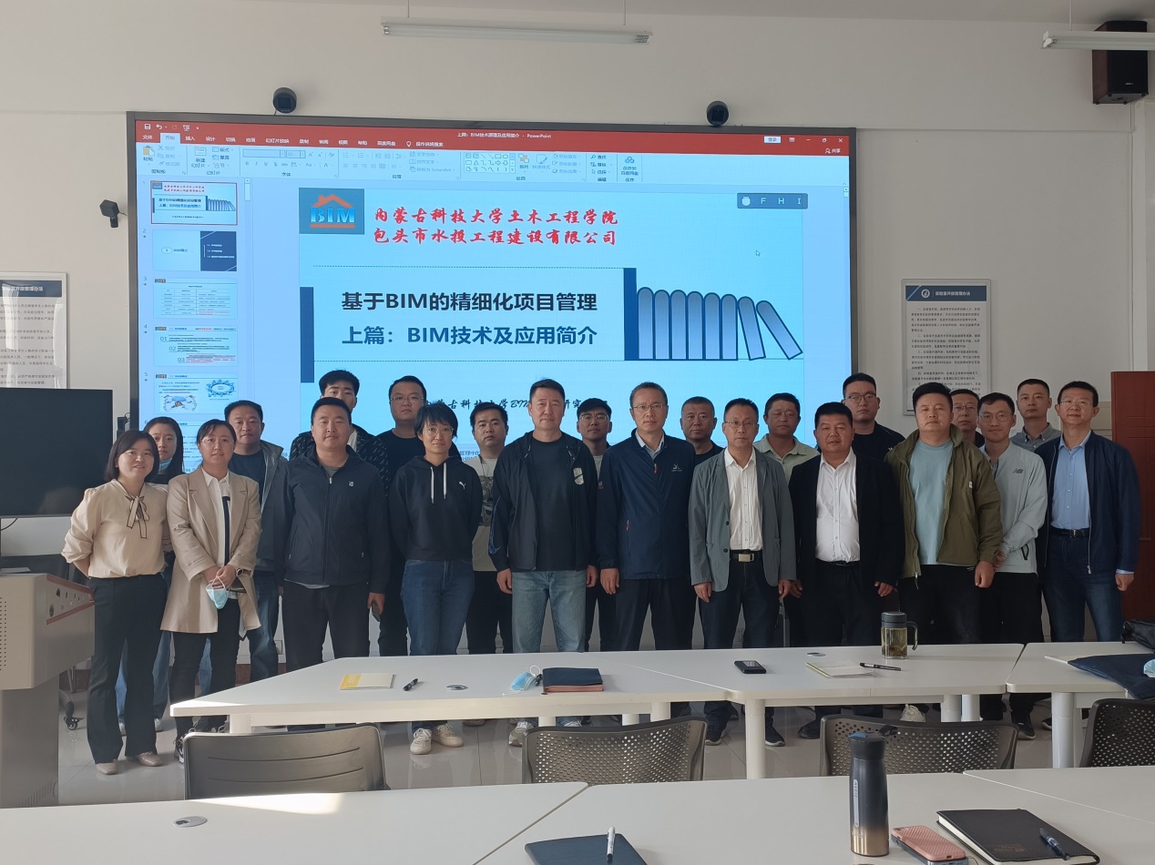 交流会结束后,赵娜和董文秀两位老师为包头市水投工程建设有限公司的施工、安全、成本、材料等管理人员及技术骨干进行了为期一天的“基于BIM的精细化项目管理”培训。