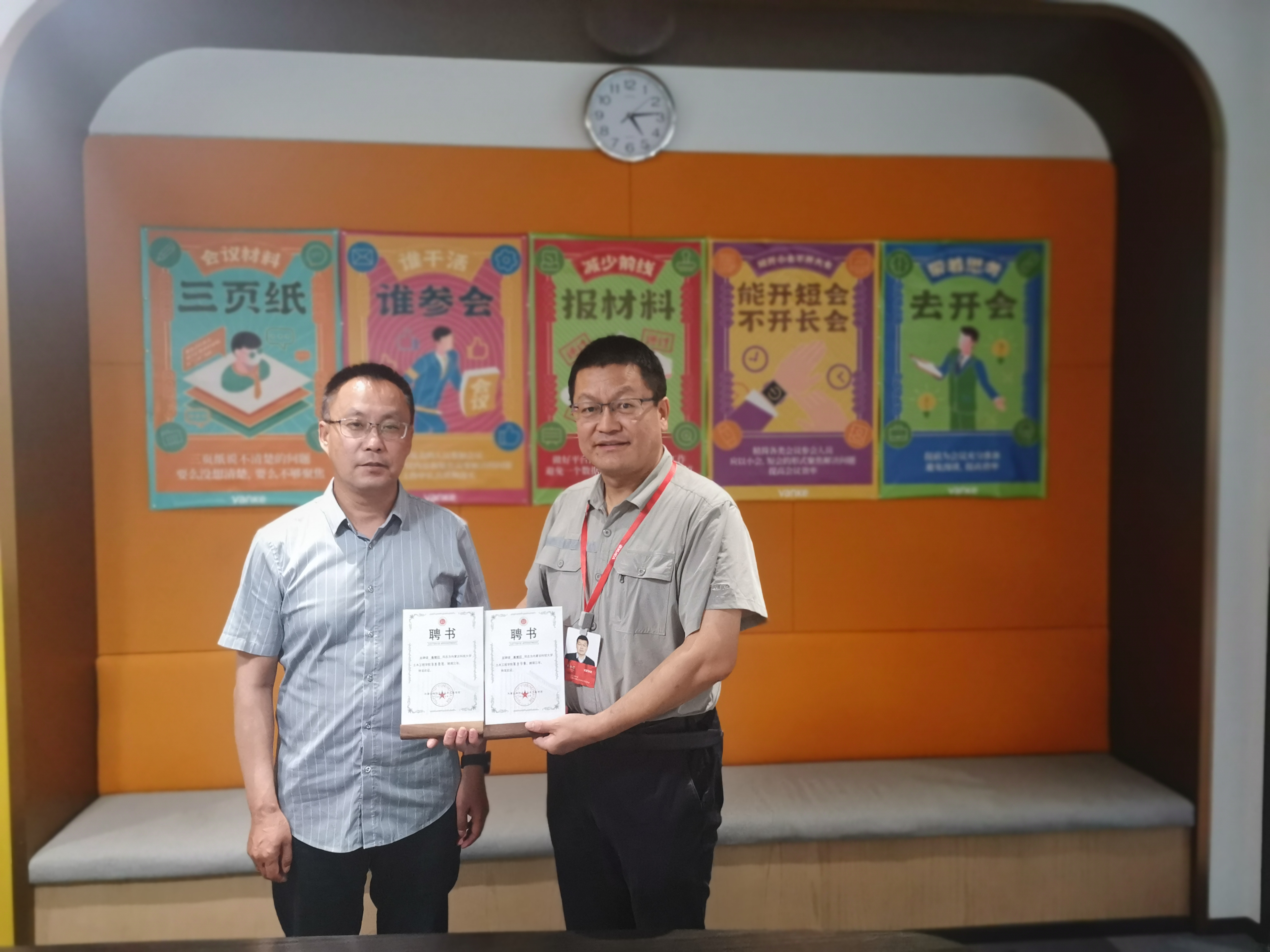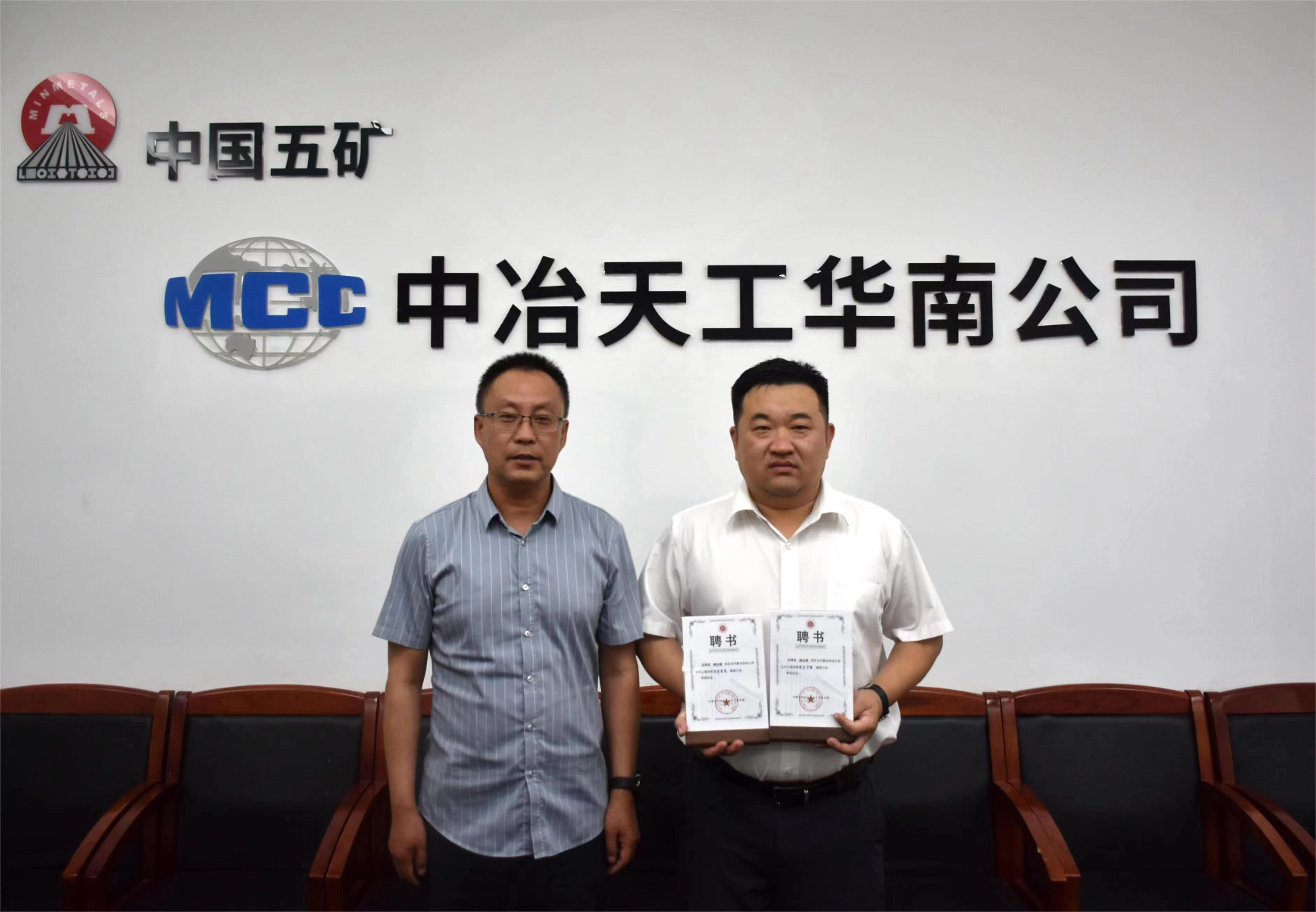 与中冶天工集团华南公司华南公司党委书记、总经理褚丝绪进行座谈,并对褚丝绪进行首批“客座教授”、“职业导师”现场聘任