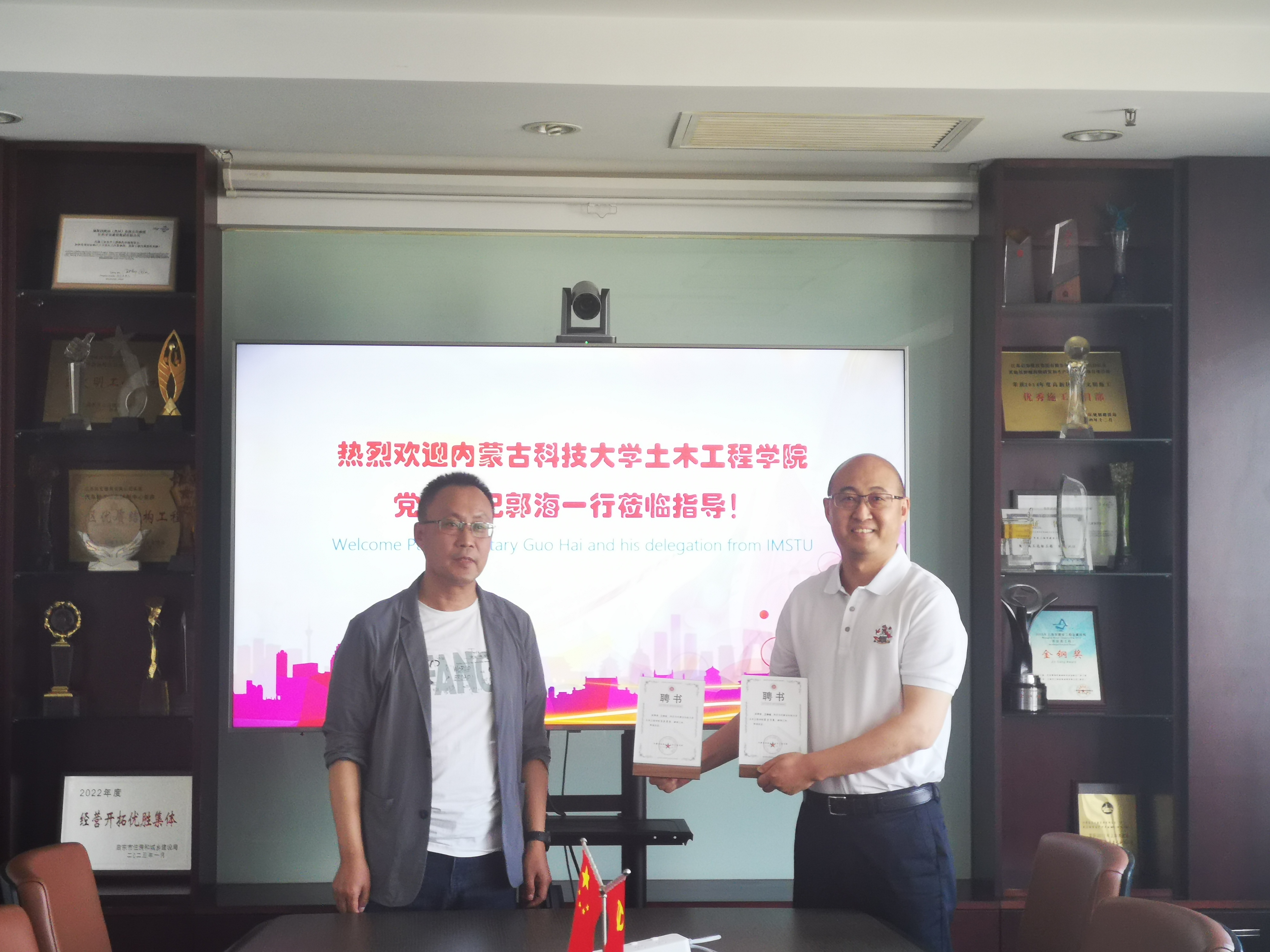 与中建科工集团助理总经理王伟进行交流,并对王伟进行首批“客座教授”、“职业导师”现场聘任