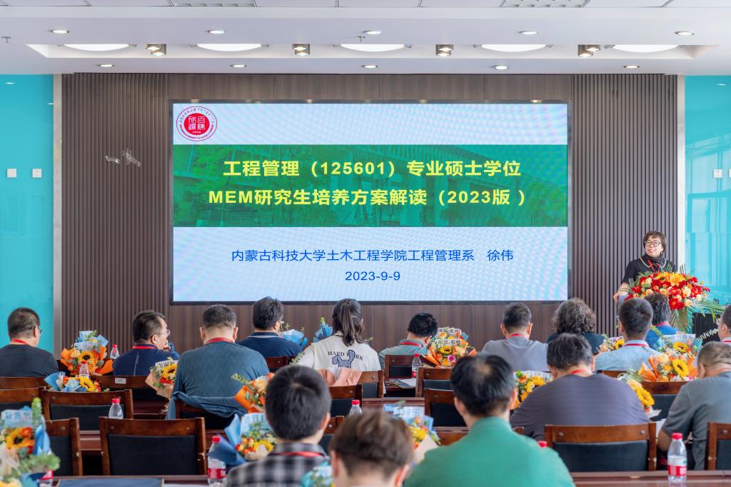 许有俊副经理介绍了公司学科情况并解读了《土木工程(085901)专业硕士学位培养方案》,徐伟教授解读了《工程管理(125601)专业硕士学位培养方案》,于景飞副教授就《公司产品过程与学位论文盲审办法》进行了解读。
