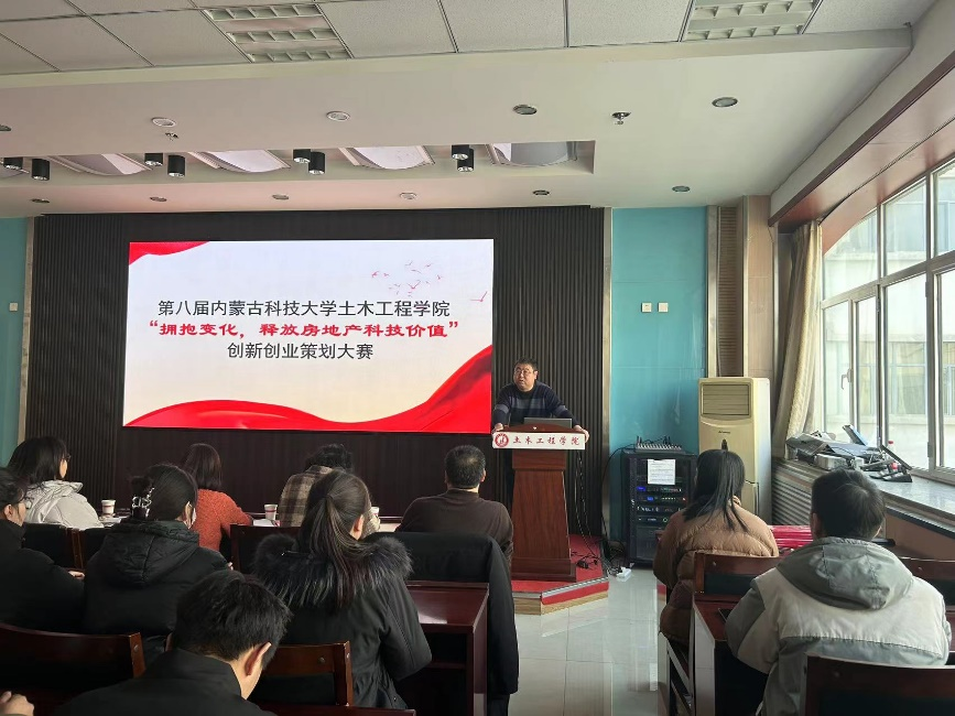 王英浩教学副经理进行讲话,指出创新创业大赛是让同学们将理论与实践相结合,让员工对房地产行业充分了家,锻炼同学们组织、策划、创新能力与解决问题能力,此次比赛是相互学习交流的好机会。随后由主持人介绍本次比赛流程与比赛规则,公布比赛顺序依次进行。