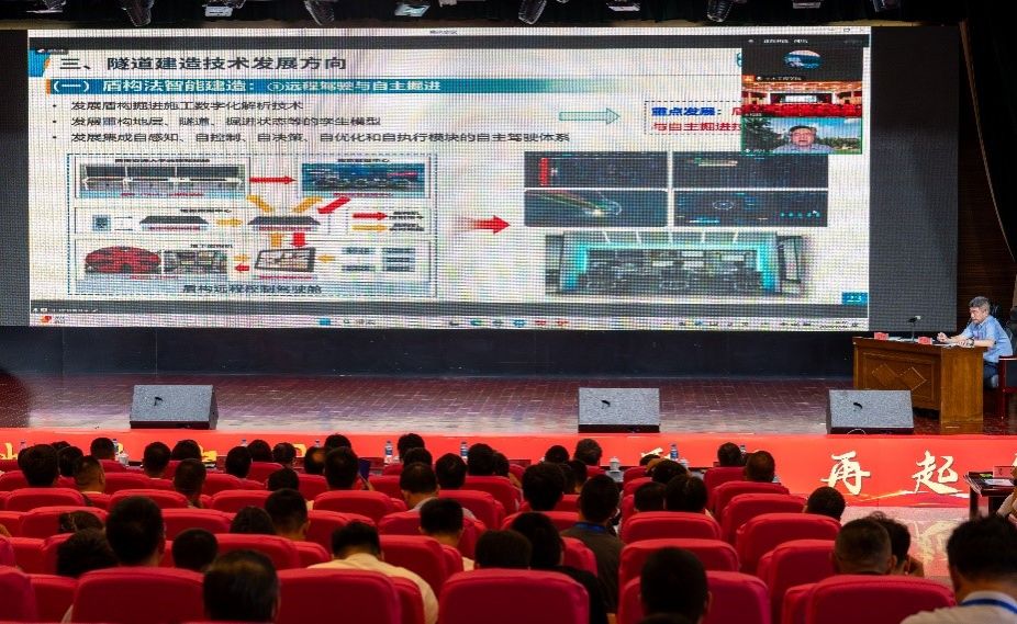 7月19日上午,中国工程院院士、深圳大学教授陈湘生先生,中国工程院院士、西南交通大学教授何川先生(线上),北京交通大学张顶立教授,华东建筑集团股份有限公司总工程师王卫东大师,北城市轨道交通绿色与安全建造技术国家工程研究中心主任杨秀仁大师,北京工业大学陶连金教授,中国矿业大学(北京)江玉生教授等专家学者做了主旨报告。陈湘生院士的报告题目为“地铁地下车站双洞密贴顶管建造技术”,介绍了采用超大顶管方法建造地铁车站的关键技术及科研成果。何川院士的报告题目为“隧道工程智能建造发展展望”,分享了隧道工程领域智能建造的前沿进展。