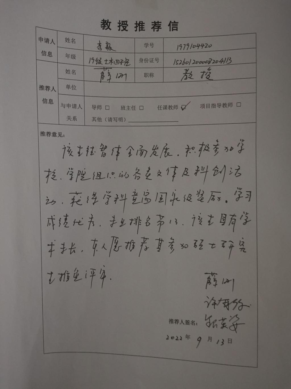 教授推荐信公示