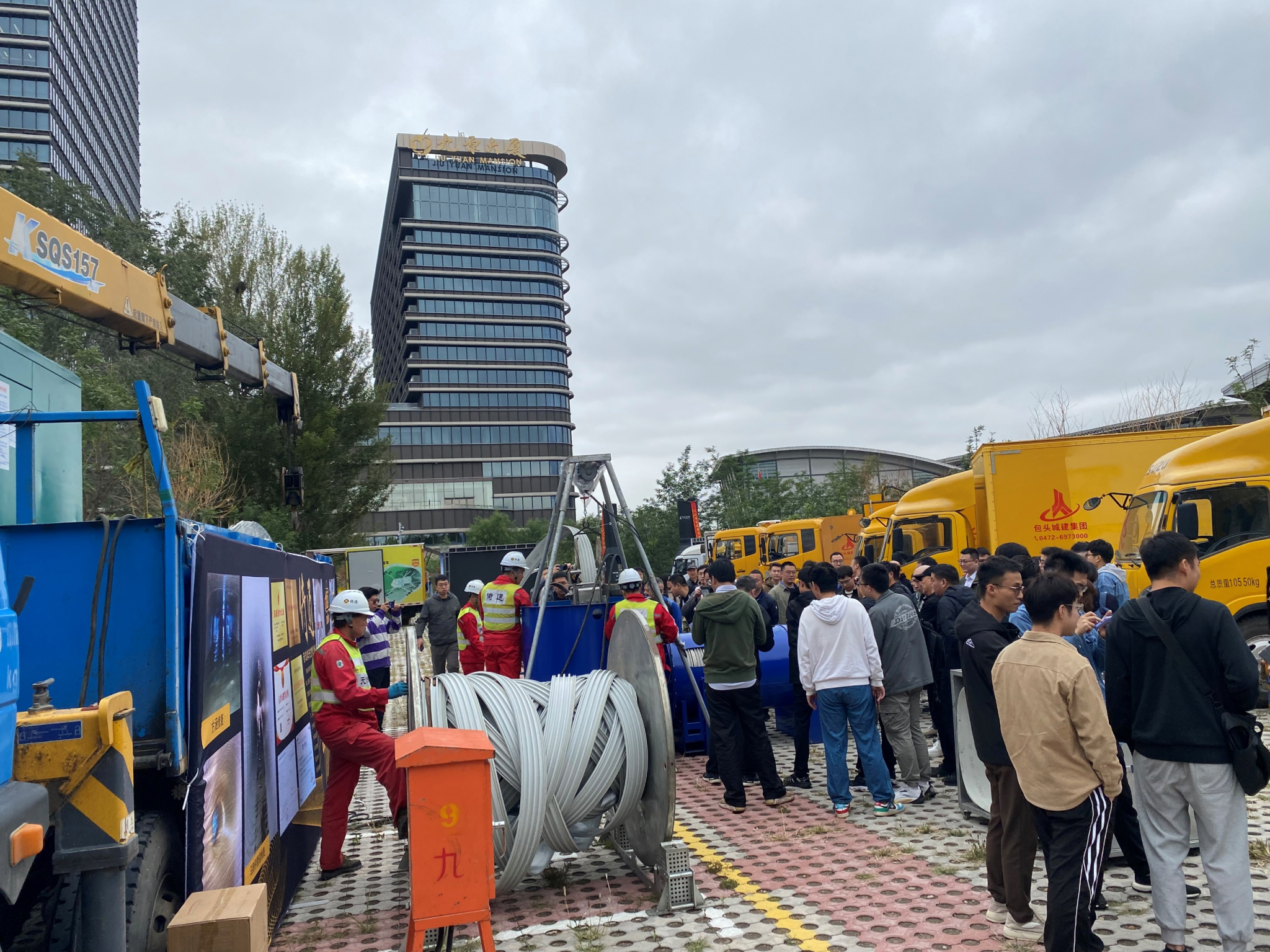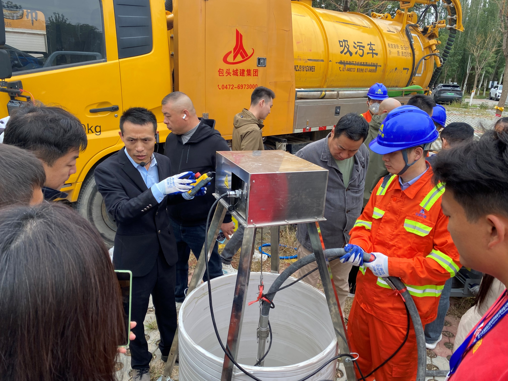 会议第三天(9月14日),组织参会人员参观了非开挖管道修复技术工法演示:CIPP紫外光固化修复(武汉中仪物联技术股份有限公司)、机械制螺旋缠绕非开挖带水修复技术(天津倚通科技发展有限公司)、热塑成型修复(杰瑞高科(广东)有限公司)、离心喷筑法检查井修复(武汉中地大与包头城建集团联合演示)、市政管道非开挖修复设备(包头城建集团股份有限公司)。通过参观工法演示,学者们对非开挖管道修复技术有了更加深入的认识和了解。