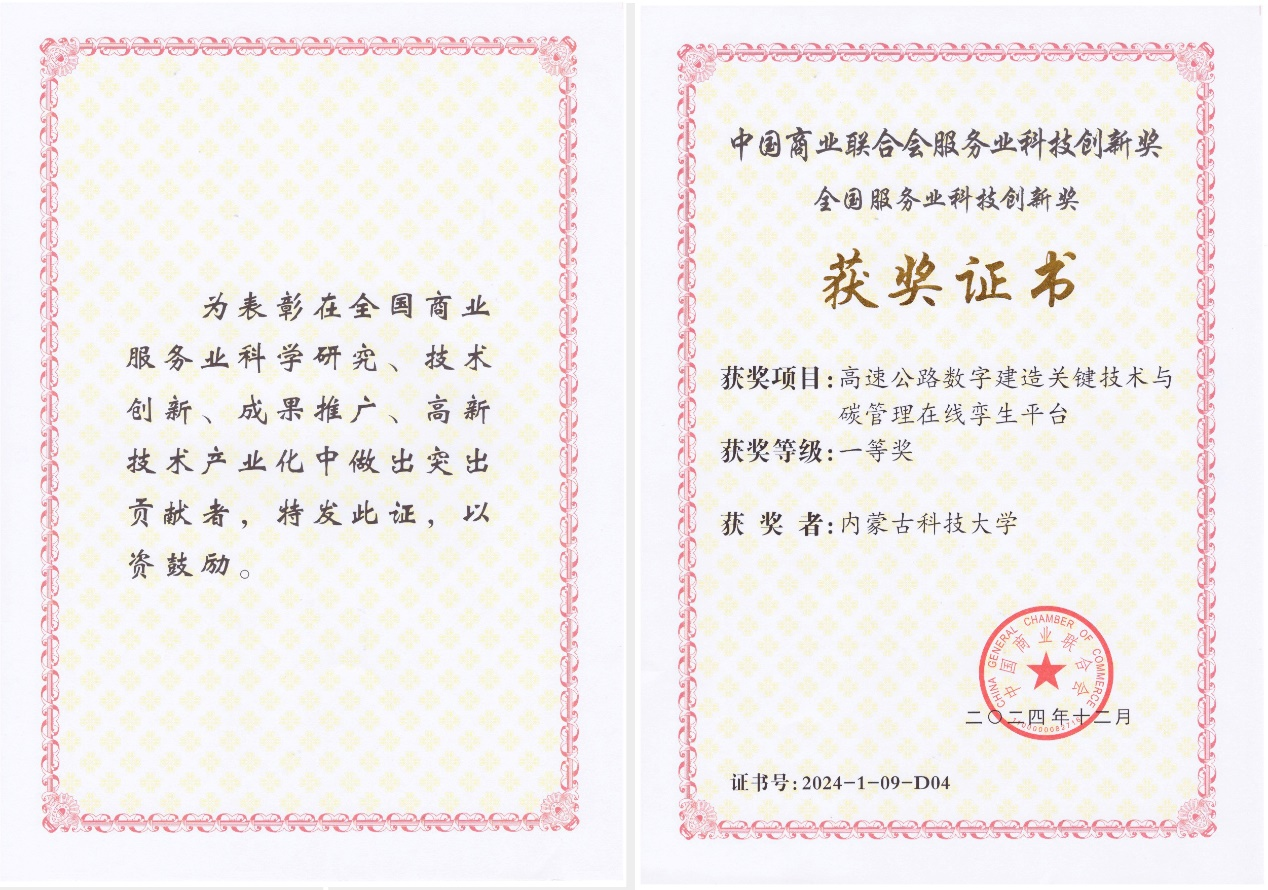 近日,伟德官网参与的科研项目获中国商业联合会服务业科技创新奖(全国服务业科技创新奖)一等奖,获奖项目为“高速公路数字建造关键技术与碳管理在线孪生平台”。