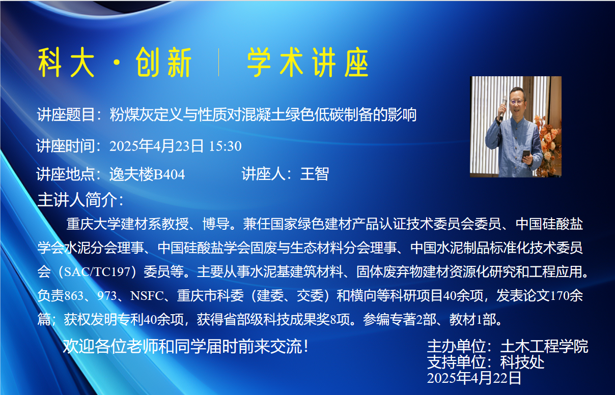 讲座题目:粉煤灰定义与性质对混凝土绿色低碳制备的影响