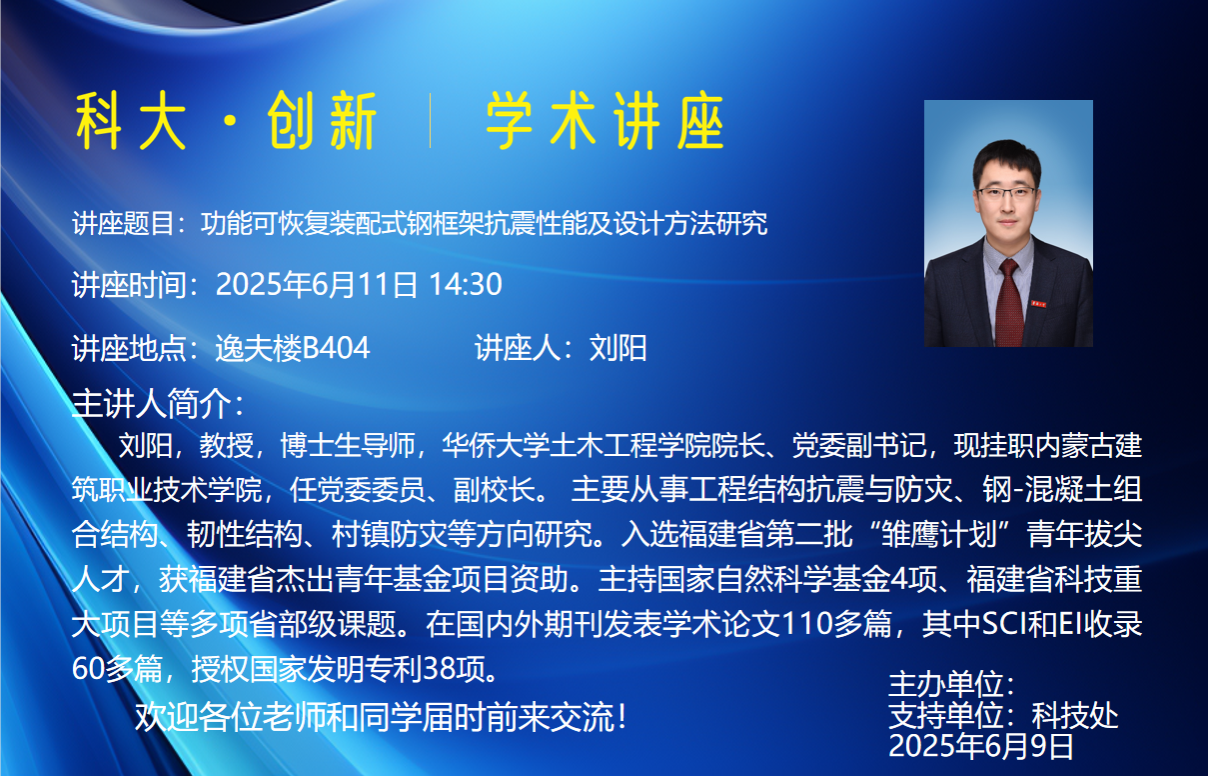 讲座题目:功能可恢复装配式钢框架抗震性能及设计方法研究